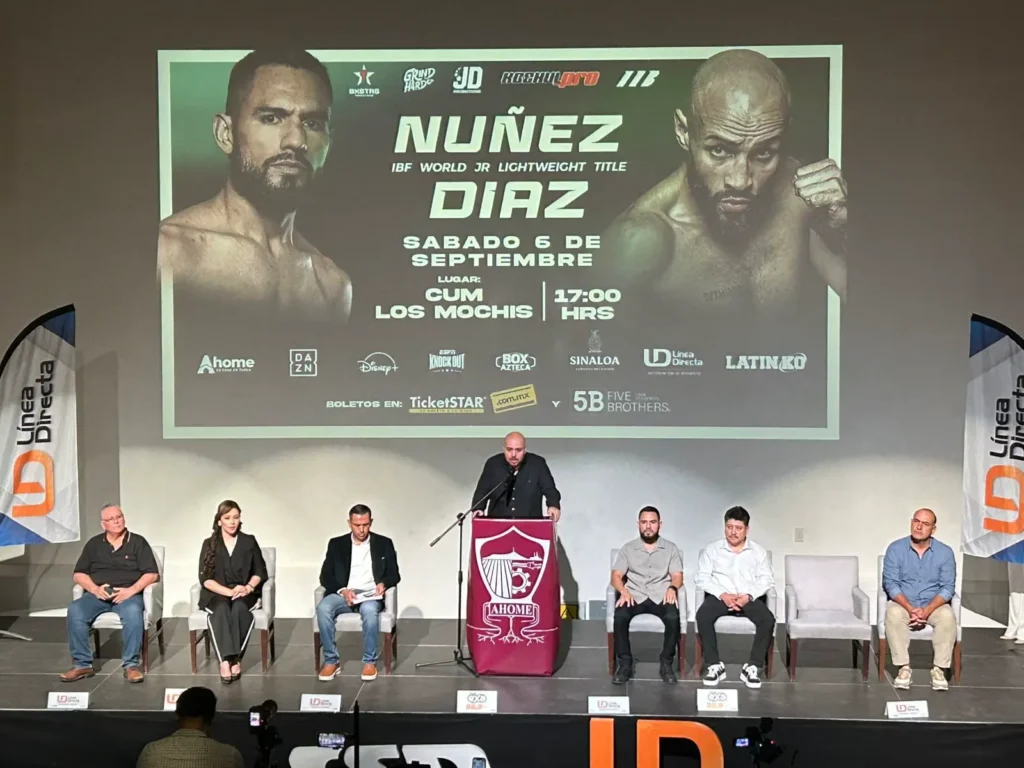Los Mochis, Ahome, Sinaloa, agosto de 2025.- Impulsando el deporte como sano esparcimiento y los nuevos talentos en las diferentes ramas, el Gobierno del Estado de Sinaloa y la empresa JD Promotions que encabeza Shaddai Noé Godoy Monárrez así como directivos del Comité Organizador dieron a conocer en conferencia de prensa este evento boxístico de talla internacional, estelarizada por el Campeón pugilista sinaloense Eduardo “Sugar” Núñez, en defensa de su Título Mundial Súper pluma contra el puertorriqueño Cristopher “Pitufo” Díaz.