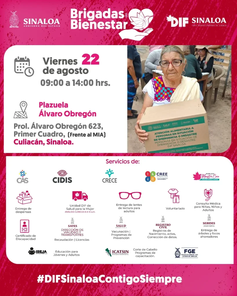 DIF SINALOA TE INVITA A SU BRIGADA DEL BIENESTAR ESTE VIERNES 22 DE AGOSTO EN CULIACÁN
