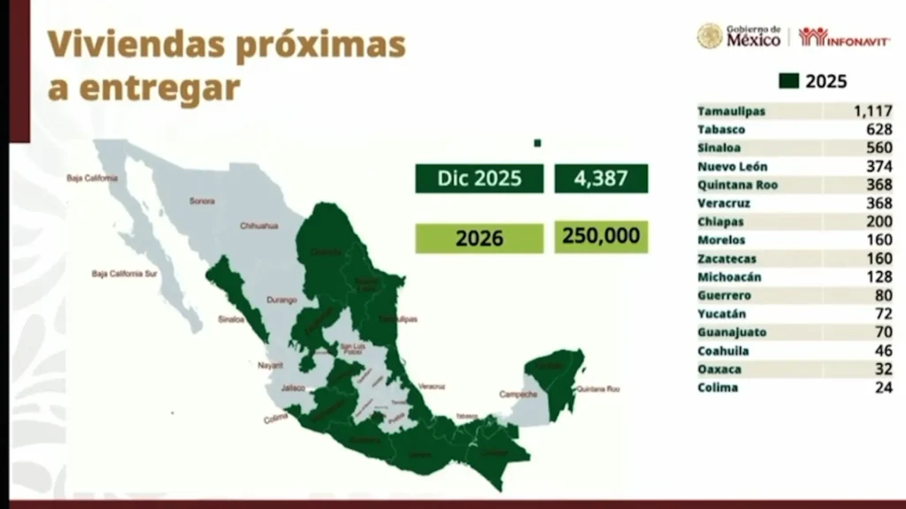 De un total de 4 mil 387 viviendas terminadas que entregará INFONAVIT a nivel nacional para diciembre del presente año, 560 de ellas se ubican en Sinaloa, precisó Romero Oropeza, quien agregó que Sinaloa cuenta con un total de 5 mil 822 proyectos iniciados, cifra que forma parte del global de 250 mil viviendas a nivel nacional que se entregarán en 2026.