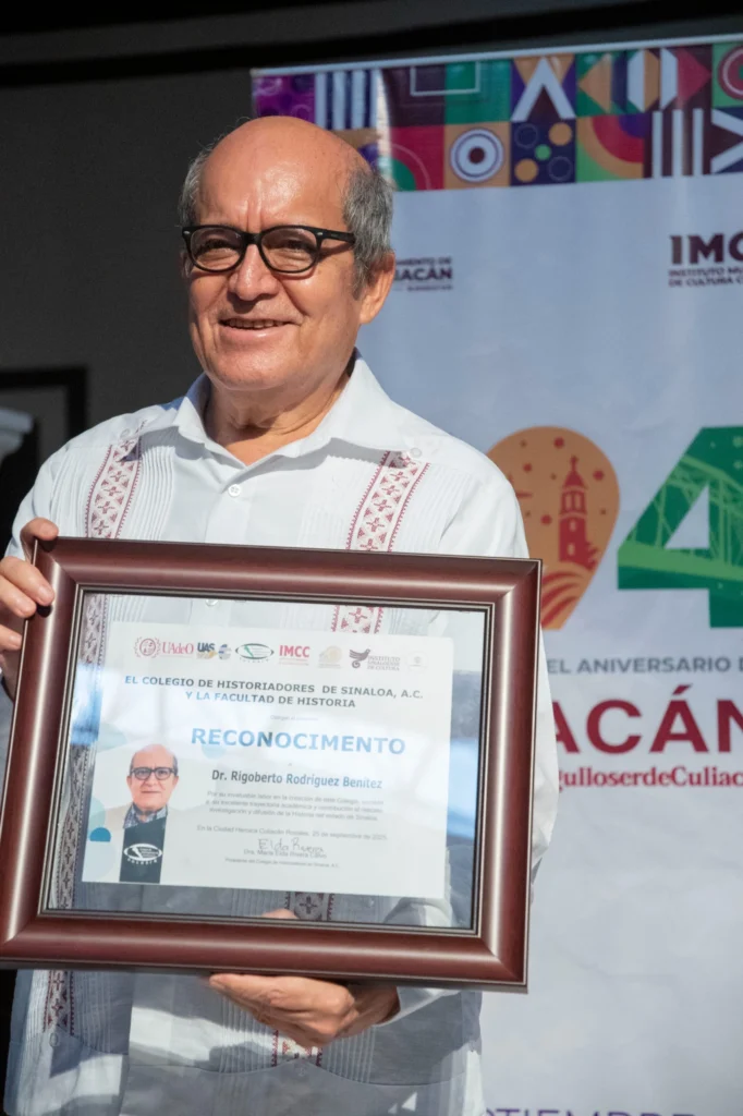 Durante el encuentro se rindió homenaje al Dr. Rigoberto Rodríguez Benítez, destacado historiador que ha dedicado su vida a la investigación y difusión de la historia de Sinaloa y Culiacán. El reconocimiento fue entregado por el Colegio de Historiadores de Sinaloa y recibido con aplausos por parte de los asistentes.