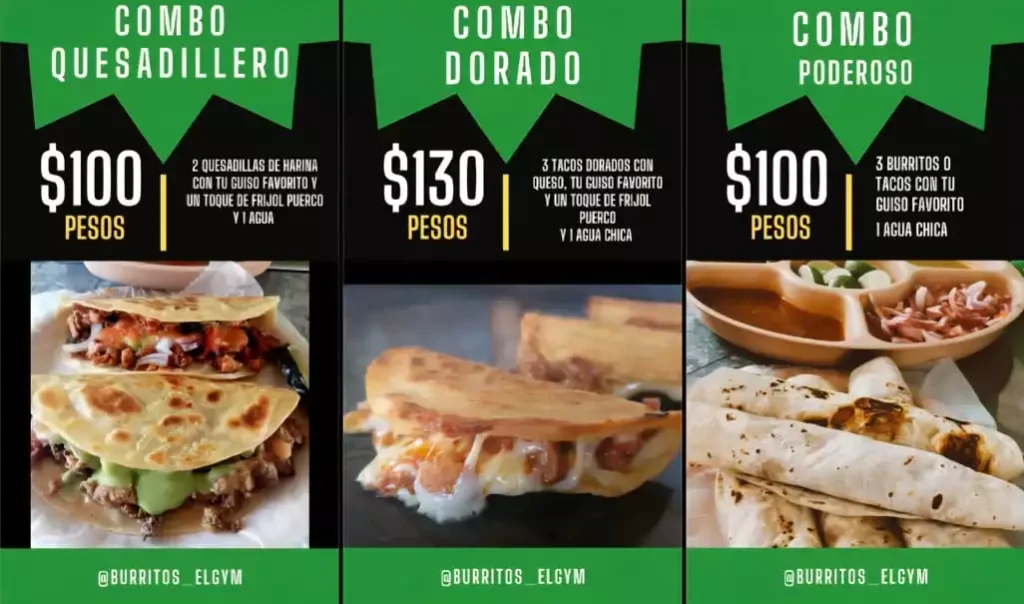 El olor a los guisados conquista tu olfato y para luego lees el menú: combo quesadillero, combo dorado, combo poderoso, eso sí, contienen tres burritos o tacos con tu guiso favorito y un agua chica, son la promesa de que lo que está por venir, sólo puede ir a mejor.