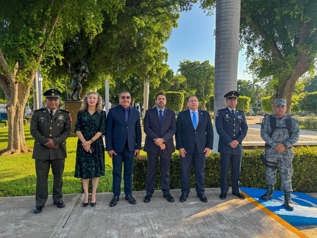 Culiacán Sinaloa, septiembre de 2025. – Autoridades civiles y militares se reunieron en la explanada de Palacio de Gobierno para conmemorar el 260 aniversario del nacimiento de José María Morelos y Pavón.