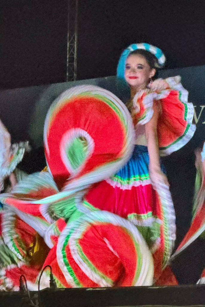 Los jóvenes bailarines ejecutaron sus números con una combinación de técnica pulcra, pasión innegable y una gallardía y altivez que capturó de inmediato la atención del público. El zapateado y los giros de las faldas multicolores, perfectamente sincronizados, crearon un espectáculo visual deslumbrante.