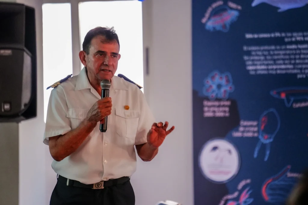 La charla fue inaugurada por el maestro Enrique Vega Ayala, cronista oficial de Mazatlán, quien leyó la destacada hoja de vida del expositor. Resaltó sus décadas de servicio en altamar y sus más de 25 años como maestro en la Escuela Náutica de Mazatlán.