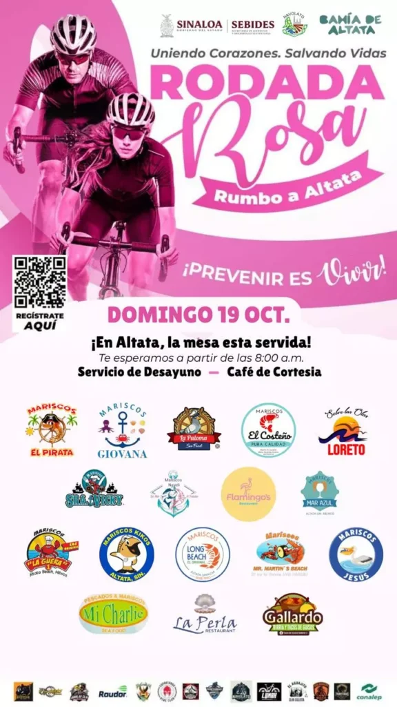 En el marco de la “Rodada Rosa”, un recorrido ciclista que partirá desde Culiacán con destino al malecón de Altata, el próximo domingo 19 de octubre al cual convoca la Secretaría de Bienestar y Desarrollo Sustentable (SEBIDES), los restaurantes del malecón se han sumado con promociones y descuentos exclusivos para los ciclistas y visitantes que asistan a disfrutar del desayuno frente al mar.