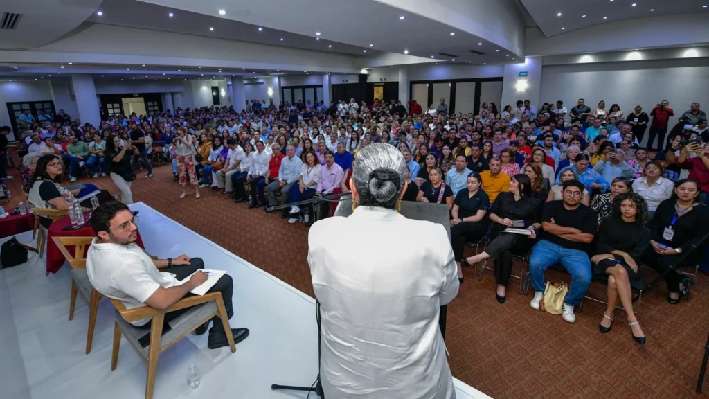La extitular de la Secretaría de Educación Pública y Cultura participó este sábado en el Conversatorio “Con Educación, la Transformación Avanza”, que congregó a cerca de mil docentes, donde participaron también la diputada de Morena Sthefany Rea Reátiga, la académica Ana Lucía Escobar Chávez y el académico Christian Marino Mendoza Gaxiola.