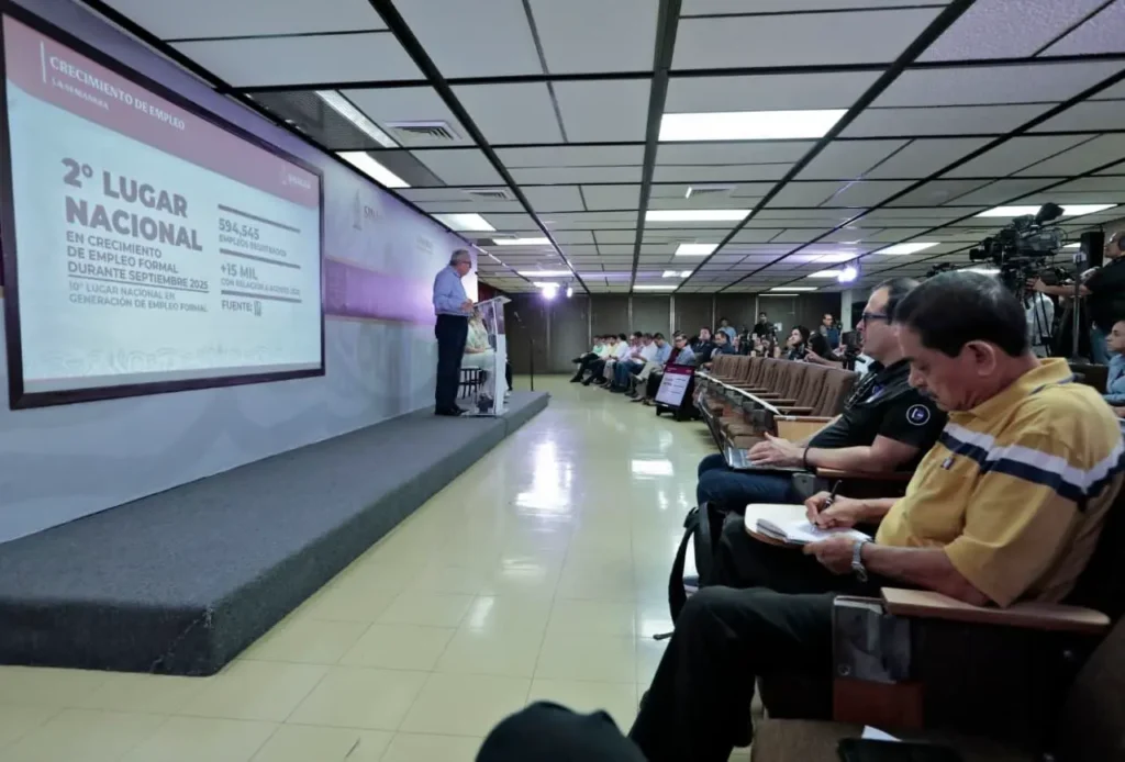 Culiacán, Sinaloa, octubre de 2025.- De acuerdo a cifras del Instituto Mexicano del Seguro Social (IMSS), Sinaloa registra un crecimiento de 15 mil nuevos empleos en septiembre de 2025, de los cuales 12 mil se generaron en el sector comercial y de servicios, ubicando a la entidad en el segundo lugar nacional en nuevos puestos de trabajo, destacó este lunes el Gobernador Rubén Rocha Moya, durante su Conferencia Semanera.