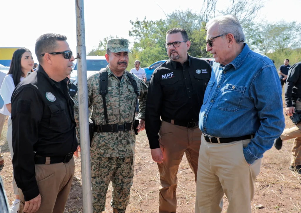 Acompañaron al Gobernador Rocha, Santos Gerardo Soto, comandante de la Novena Zona Militar; Crisóforo Martínez Parra, coordinador territorial de la Región Noroeste de la Guardia Nacional; Claudia Zulema Sánchez, Fiscal del estado de Sinaloa; Jesús Felipe Juárez Patiño, en representación de la Secretaría de Gobierno; Gerardo Edmundo Ledezma, representante de la Cuarta Región Naval, así como Beatriz Aguiar Monroy, comisionada de la Comisión Estatal para la Prevención de Riesgos Sanitarios en Sinaloa; Martín Martínez Villafranca, jefe de la Policía Federal Ministerial; Leticia Gonzáles Galicia, coordinadora regional de Servicios Periciales; personal del Órgano Interno de Control y Fiscalía General de la República, quienes tienen la encomienda de vigilar y verificar el correcto desarrollo del evento.