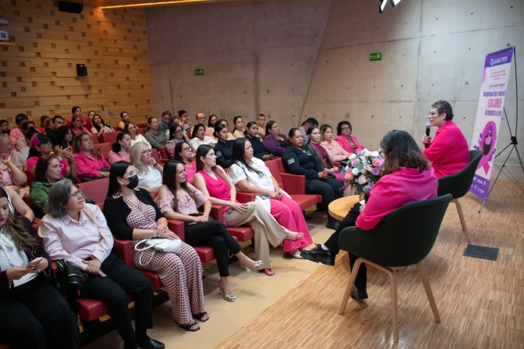 Culiacán, Sinaloa, octubre de 2025.- En el marco de la conmemoración del Día Mundial contra el Cáncer de Mama, se llevó a cabo el conversatorio “Resignificando el dolor a través del arte: Elisa Carreón, del diagnóstico a la lucha”, en el Auditorio del Jardín Botánico de Culiacán.