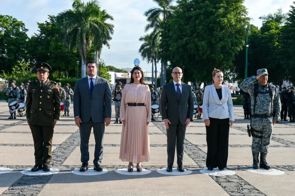 En este acto cívico estuvieron presentes el Dip. Rodolfo Valenzuela Sánchez, Presidente de la Mesa Directiva del H. Congreso del Estado; el Dr. José Ramón Bohon Sosa, Secretario Técnico del Supremo Tribunal de Justicia; Lcda. María Elena Armenta de la Rocha, Secretaria de las Mujeres del H. Ayuntamiento de Culiacán; Capitán 1/o. I NTDTE. German González Córdova, Representante de la 9/a. Zona Militar; Cap. 2/o. F.A.E.E.A. Militar No. 10 en Sinaloa y José Alberto Arroyo Simón, Representante de la Base Aérea.