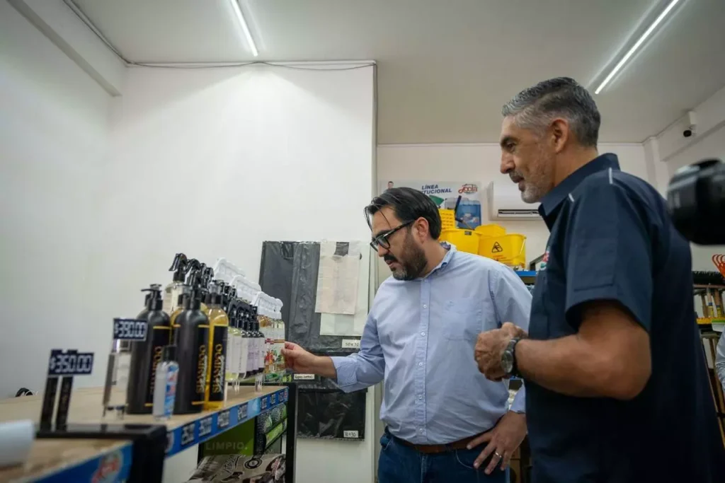 Durante su visita al establecimiento ubicado en el sector Terranova, Gámez Mendívil reconoció a los líderes de Productos Jocla como pioneros en la producción local de insumos de limpieza, destacando que su labor representa un orgullo para la ciudad.