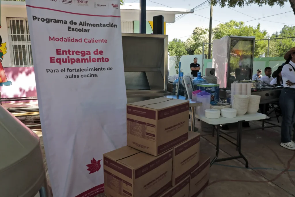 Además de las tres aulas nuevas, el gobernador del estado entregó diversos enseres de cocina, que incluyó un refrigerador, cilindros de gas y estufas, para equipar el área de cocina del plantel, donde se preparan los alimentos calientes para los niños.