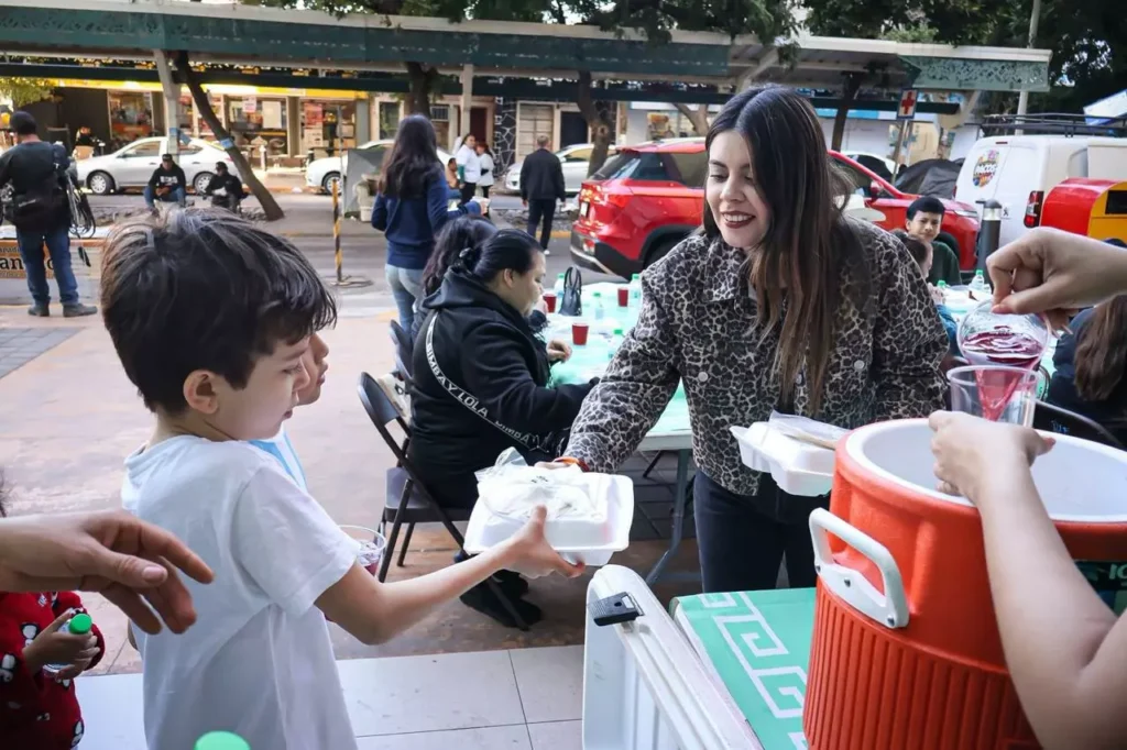Los alimentos consistieron en machaca con verdura, frijoles, queso, tortillas y aguas frescas de jamaica y natural, elaborados con calidad y calidez para ofrecer un momento de alivio y bienestar a las familias.