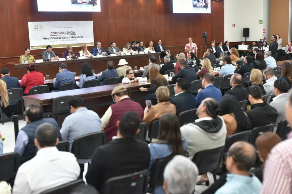 Culiacán, Sinaloa, enero de 2026.– En el marco del análisis del Cuarto Informe de Gobierno, la Comisión de Desarrollo Económico del Congreso del Estado recibió en comparecencia al Secretario de Economía, Mtro. Feliciano Castro Meléndrez, sesión que fue presidida por la diputada Paola Iveth Gárate Valenzuela, en su calidad de presidenta de dicha Comisión.
