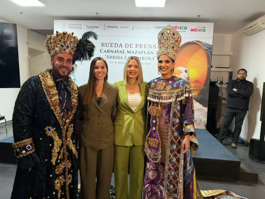 Mazatlán, Sinaloa, enero de 2026.- La Presidenta Municipal de Mazatlán, Estrella Palacios Domínguez, participó en una rueda de prensa en la Ciudad de México para promocionar el Carnaval Internacional Mazatlán 2026, “Arriba la Tambora”, que se celebrará del 12 al 17 de febrero, uno de los eventos culturales y turísticos más importantes del país.