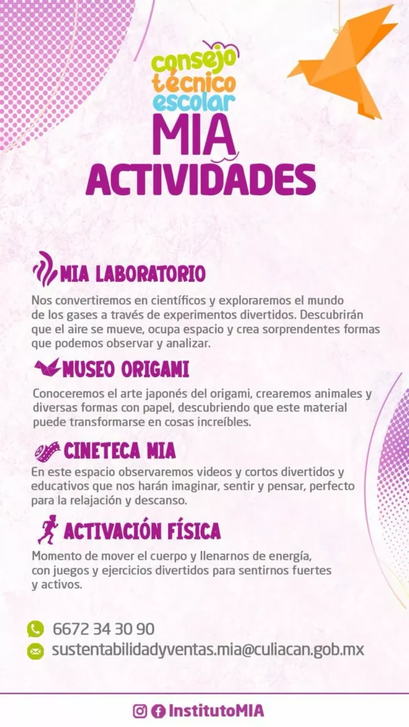 Culiacán, Sinaloa, enero de 2026.- El Instituto MIA llevará a cabo el Consejo Técnico Escolar “Ideas que vuelan”, una jornada diseñada para que niñas y niños de entre 6 y 12 años aprendan, experimenten y se diviertan a través de actividades educativas y recreativas que estimulan la creatividad, la curiosidad y el trabajo en equipo.