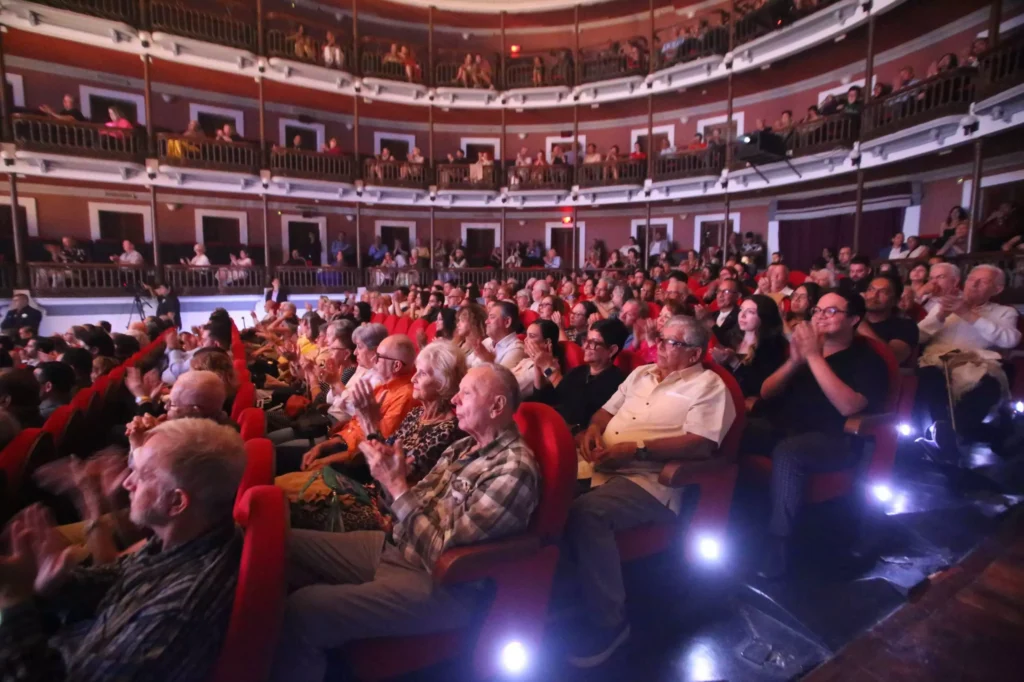 Tras la entrega del premio, el Teatro Ángela Peralta vibró con la puesta en escena «Sentimientos que dan orgullo». Bajo la producción del Instituto Municipal de Cultura, Turismo y Arte de Mazatlán, el espectáculo fusionó música sinaloense, voces de primer nivel, ballet clásico y danza folclórica.