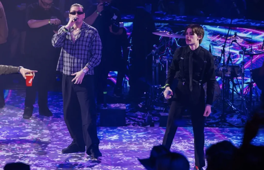 Uno de los momentos más sorpresivos de la noche llegó con la aparición de Los Esquiveles, quienes se convirtieron en los artistas sorpresa del evento e interpretaron el tema “Alucin”, desatando la emoción del público y elevando aún más la intensidad del espectáculo.