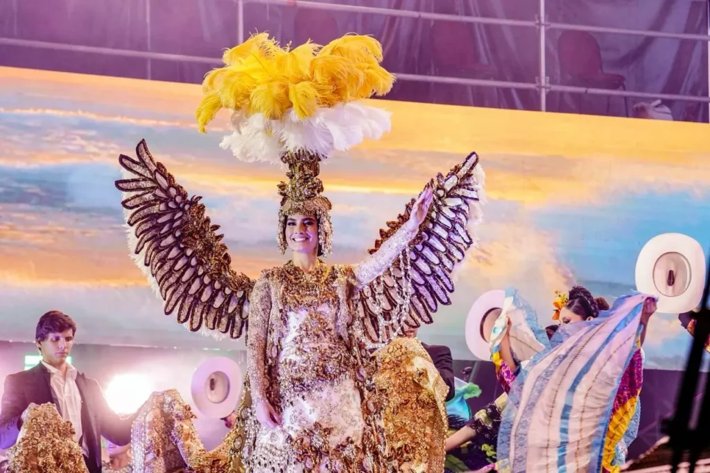 A lo largo del espectáculo producido por el Instituto de Cultura de Mazatlán, la danza recreó distintas etapas del Carnaval y referencias visuales de mediados del siglo XX, con coreografías que ocuparon escenario y rampas, llenando el recinto de color, ritmo y tradición.