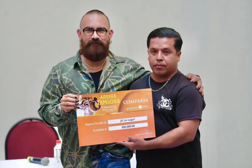 Mazatlán, Sinaloa, febrero de 2026.- Tras una brillante participación en los magnos desfiles del Carnaval Internacional de Mazatlán 2026, “Arriba la Tambora”, el Instituto Municipal de Cultura, Turismo y Arte de Mazatlán premió este viernes a los triunfadores del Concurso de Comparsas de Concurso.