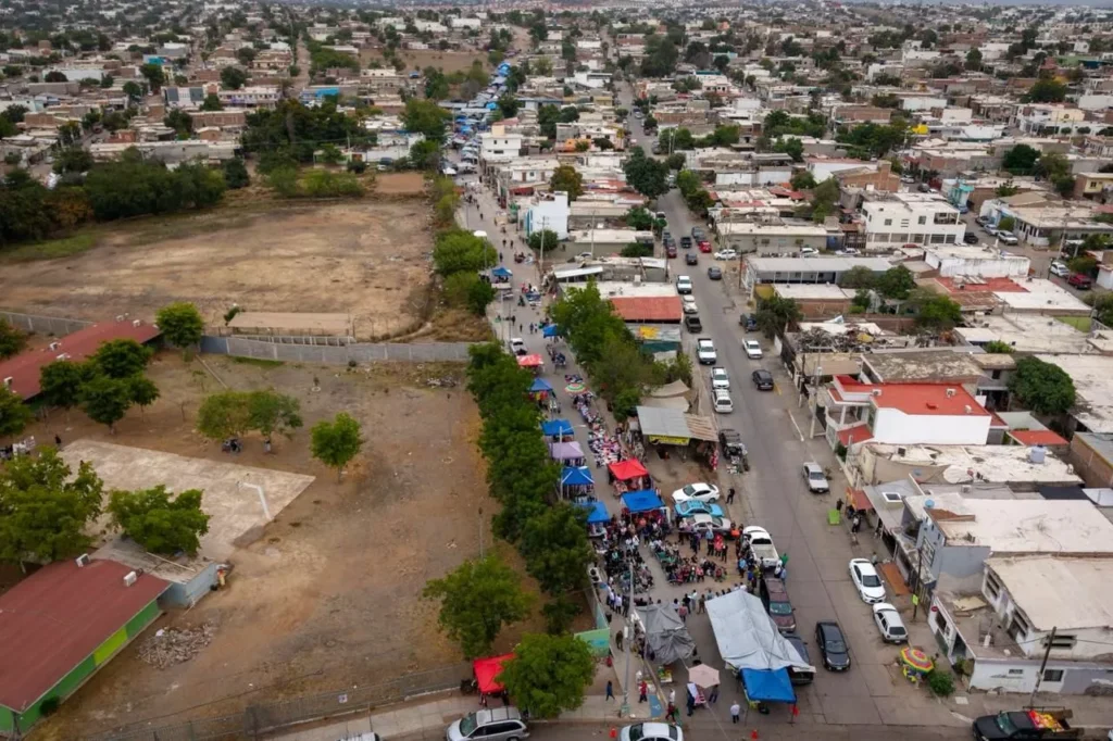En otro espacio de encuentro directo con la ciudadanía, el alcalde Juan de Dios Gámez dialogó con tiangueros, vecinos del sector y la comunidad escolar del COBAES, donde inauguró dos tramos de la calle Artículo 27 y se comprometió a atender nuevas gestiones recibidas.