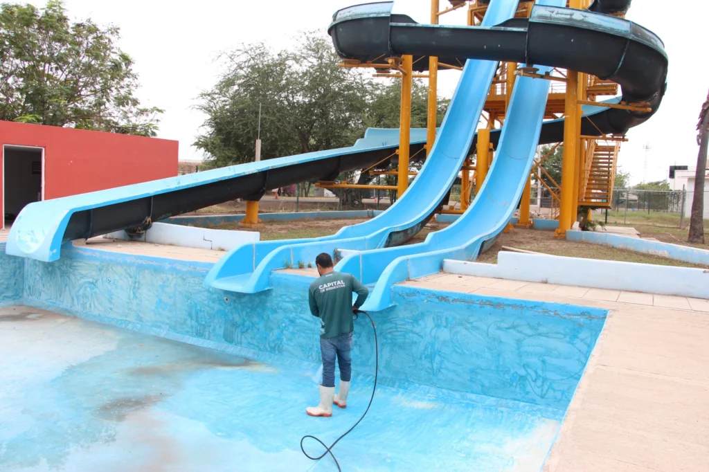 Entre las acciones que se han llevado a cabo destacan labores de pintura general, reparación de baños, mantenimiento en palapas, áreas de alberca y juegos infantiles, así como la mejora de distintos espacios dentro de este centro recreativo.