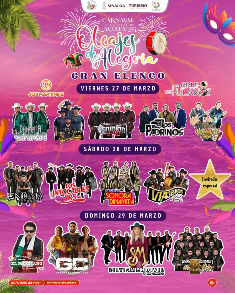 “La invitación está abierta: vengan a vivir el Carnaval de Altata y a disfrutar su música, su gastronomía, su malecón y, sobre todo, la hospitalidad de su gente”, concluyó.