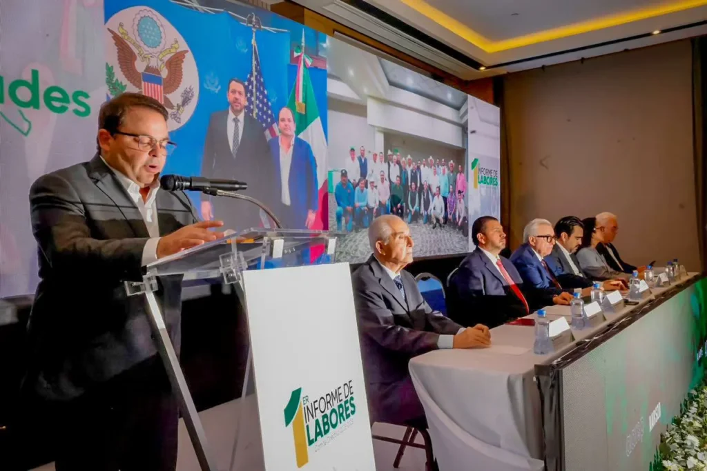*El mandatario estatal asistió al primer informe de labores del presidente de la CAADES, Jesús Rojo Plascencia