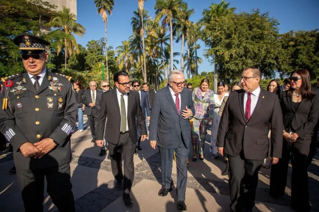 Durante la ceremonia, encabezada por el gobernador Rubén Rocha Moya, autoridades civiles y militares rindieron honores al Benemérito de las Américas, recordando su legado en la consolidación del Estado mexicano y los valores de legalidad, justicia y respeto a las instituciones.