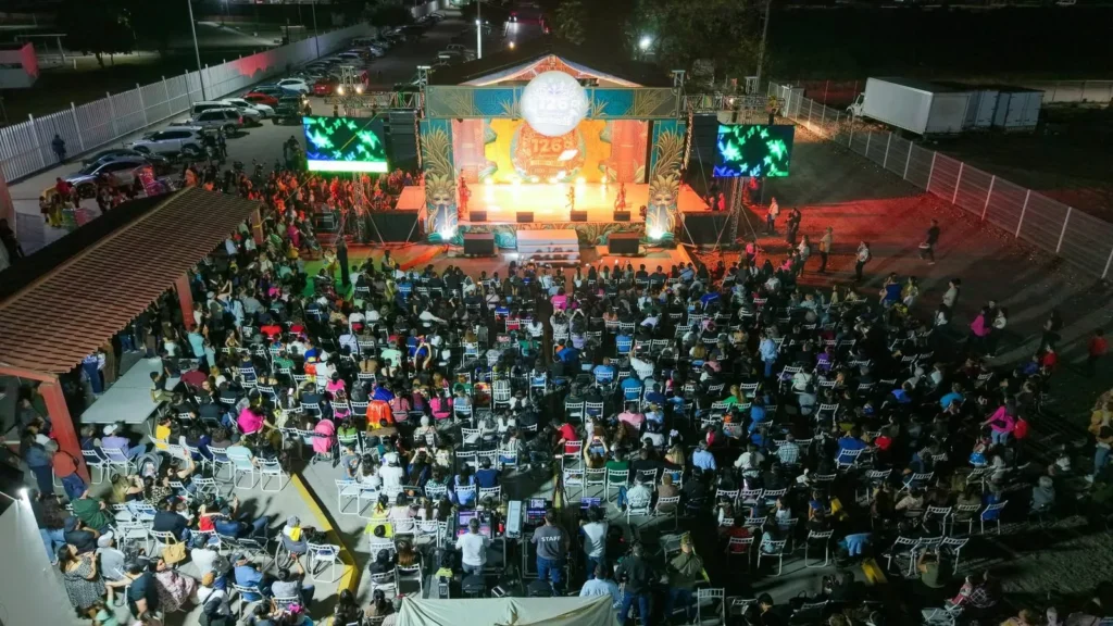 La velada continuó con música y gran ambiente, donde los asistentes disfrutaron de la presentación de la banda La Traviesa y Grupo La Kaña, quienes pusieron a bailar al público y cerraron una noche llena de tradición, alegría y orgullo por las fiestas.