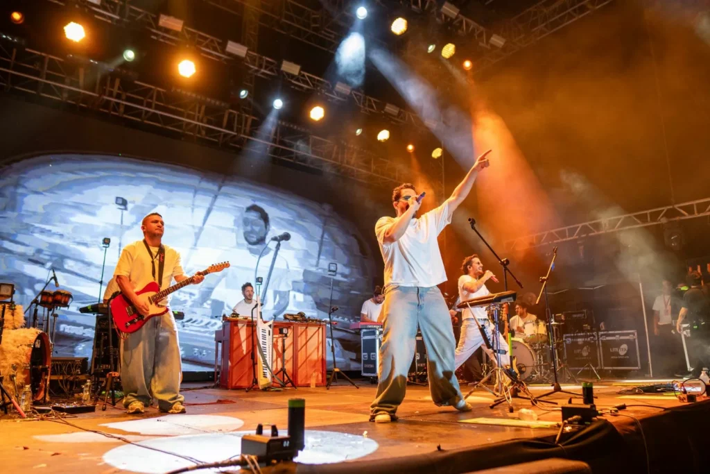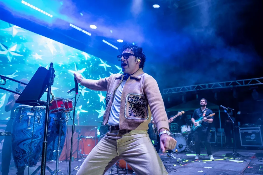 La noche musical inició a las 9:30 con la presentación de Adrián Cota, quien conquistó al público con su talento y carisma al interpretar temas como “Le hace falta un beso”, momento especial en el que invitó al escenario a su padre, Ricardo Cota, generando una ovación entre los asistentes. También interpretó “Lloviendo estrellas”, popularizada por Cristian Castro, y puso a bailar a las y los presentes con su estilo al ritmo de “Boujee”.