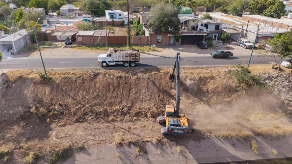 Con maquinaria especializada, se llevan a cabo trabajos de retiro de desechos, nivelación del terreno y saneamiento del área, acciones que permiten mejorar no solo la imagen urbana, sino también las condiciones de seguridad y salubridad en este punto de la ciudad.