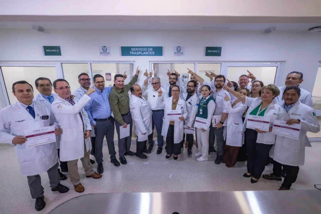 Luego del enlace que se hizo con la Conferencia Mañanera del Pueblo, de la presidenta de la República, Claudia Sheinbaum Pardo, desde Palacio Nacional, para inaugurar de manera formal la nueva Unidad de Trasplantes, tuvo lugar la entrega de 16 reconocimientos a doctoras, doctores y enfermeras que realizaron los primeros seis trasplantes que se han practicado en esta área, todos de manera exitosa.