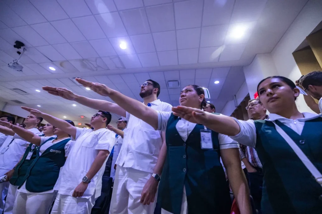 A nombre de los especialistas, intervino la anestesióloga Jatziri Anahí Ulises Osuna, quien agradeció la oportunidad de desempeñar su profesión en esta institución, que representa vocación y servicio hacia nuestra comunidad.