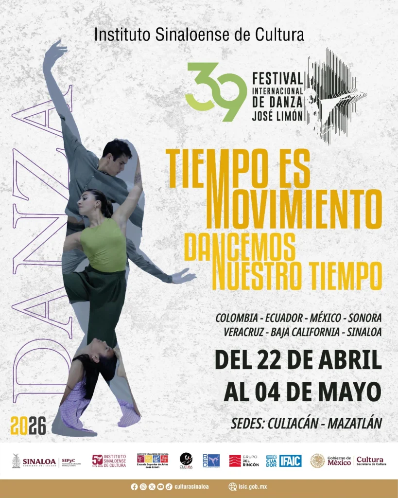 Culiacán, Sinaloa, abril del 2026.- El Instituto Sinaloense de Cultura presentó en conferencia de prensa la programación del 39° Festival Internacional de Danza Contemporánea José Limón 2026, “Tiempo es movimiento, dancemos nuestro tiempo”, que se llevará a cabo del 22 de abril al 4 de mayo en Culiacán y Mazatlán, consolidándose como una de las plataformas más longevas del país para la difusión y proyección de la danza contemporánea.