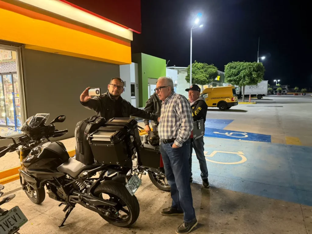 Villa Unión, Mazatlán, 9 de abril de 2026.- El Gobernador de Sinaloa, Rubén Rocha Moya, le da la bienvenida a motociclistas que arriban al estado para formar parte de la Semana Internacional de la Moto en Mazatlán.