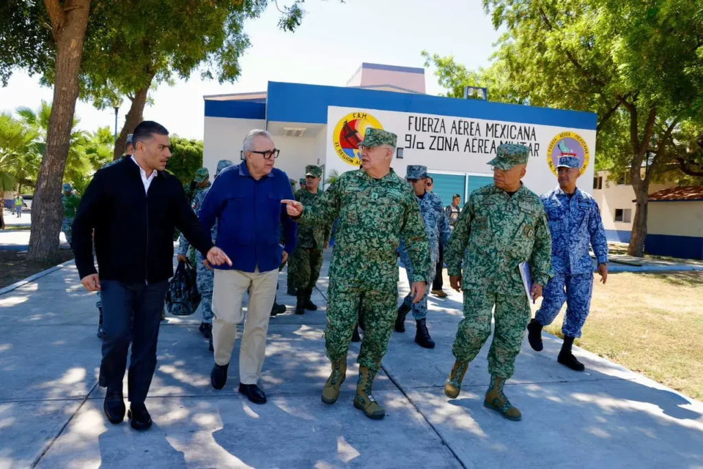 El encuentro de los mandos con el gobernador Rocha, y al que acudieron también representantes del sector empresarial y educativo del estado, fue encabezado por el Secretario de Seguridad y Protección Ciudadana del Gobierno de México, Omar García Harfuch, el Secretario de la Defensa Nacional, General de División DEM, Ricardo Trevilla Trejo, entre otros mandos.