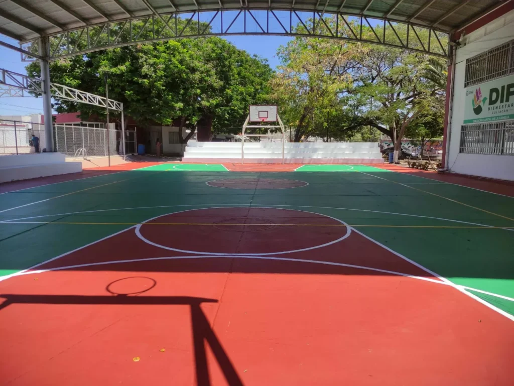 De igual forma, en la Unidad DIF Humaya se realizaron trabajos en la cancha de usos múltiples, donde se pintó en su totalidad el espacio, incluyendo estructuras, tableros y gradas, ampliando así el beneficio a cerca de mil personas.