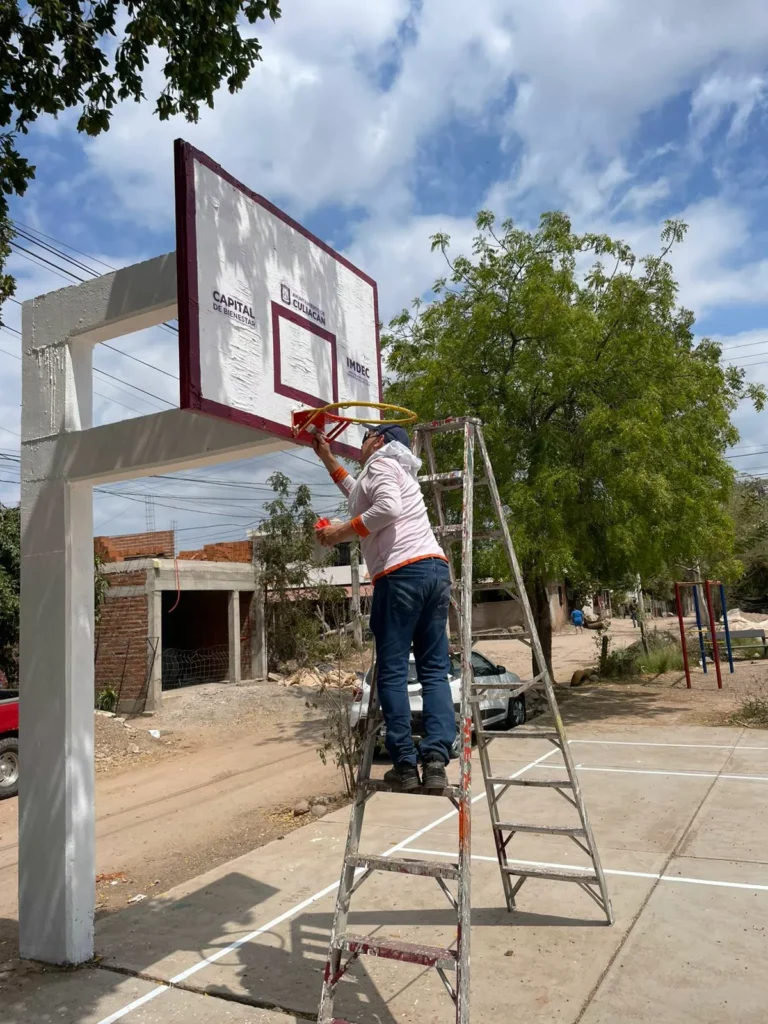 Culiacán, Sinaloa, abril de 2026.- El Ayuntamiento de Culiacán continúa con la rehabilitación de espacios deportivos en distintos sectores de la ciudad, con trabajos realizados en canchas del fraccionamiento Los Mezcales y la Unidad DIF Humaya.