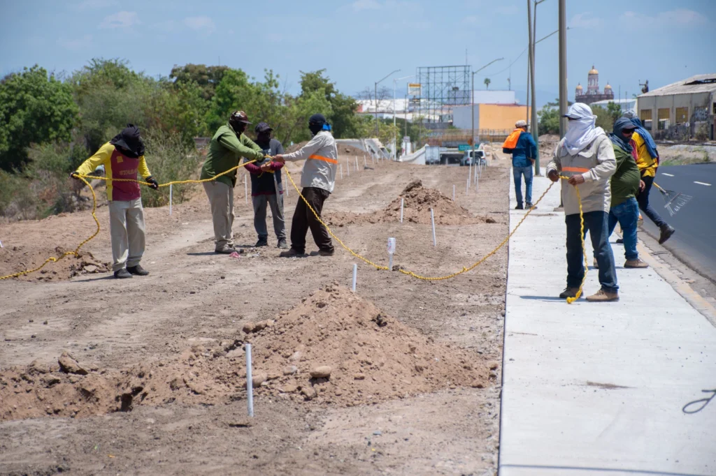 Realizan limpieza, nivelación y preparación de terreno para instalación de césped en el Eje Federalismo.