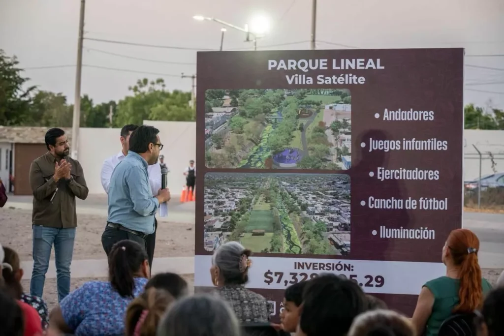 Culiacán, Sinaloa, abril de 2026.- La colonia Villa Satélite en Culiacán inicia una nueva etapa de desarrollo con el banderazo de construcción de un parque lineal, que transformará un espacio en desuso en un área segura y funcional para la convivencia de las familias.