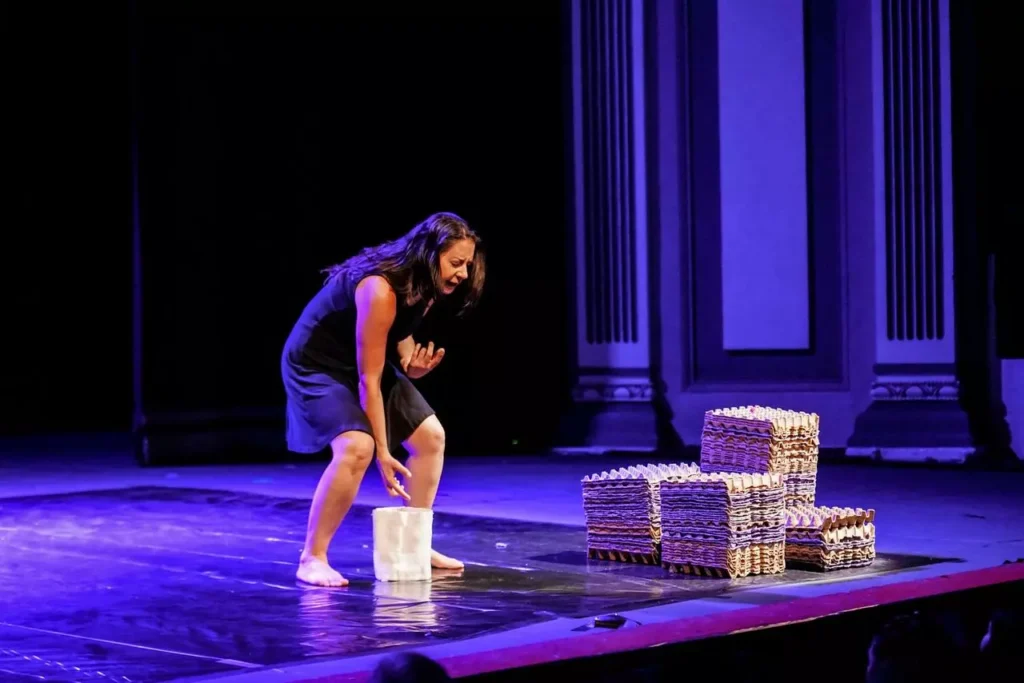 Mazatlán, Sinaloa, abril de 2026.- La escena contemporánea se convirtió en un espacio de confrontación, humor y reflexión la noche del sábado con la presentación de D(R)AMA, obra de la artista ecuatoriana Yasna Vivanco Muñoz, en el Teatro Ángela Peralta, como parte del 39° Festival Internacional de Danza José Limón presentado por el Instituto de Cultura, Turismo y Arte de Mazatlán con apoyo del ISIC.